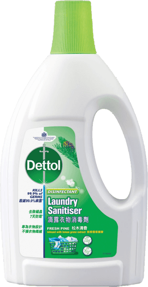 Dettol Laundry Sanitiser is applicable for laundry sanitisation. It effectively kills 99.9% of germs^, removes mildew smell and sweat stink without damaging fabric. It is suitable for many types of fabric Outer and underwear, adult and child cloths can be washed together.