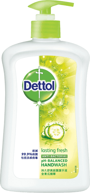 Killls 99.9%* of germs including flu virus Did you know Dettol Hand Wash kills 99.9%* of germs including E.coli and flu virus and gives 10 times better protection against stomach bugs and skin infections**? The pH-balanced formula with Dettol’s trusted germ protection and unique lasting fresh technology with cucumber extract helps maintain your skin feeling healthy and fresh.